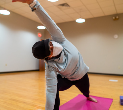 A class where postures are modified and made accessible to people who have chronic pain, lack of mobility, or unable to move easily.